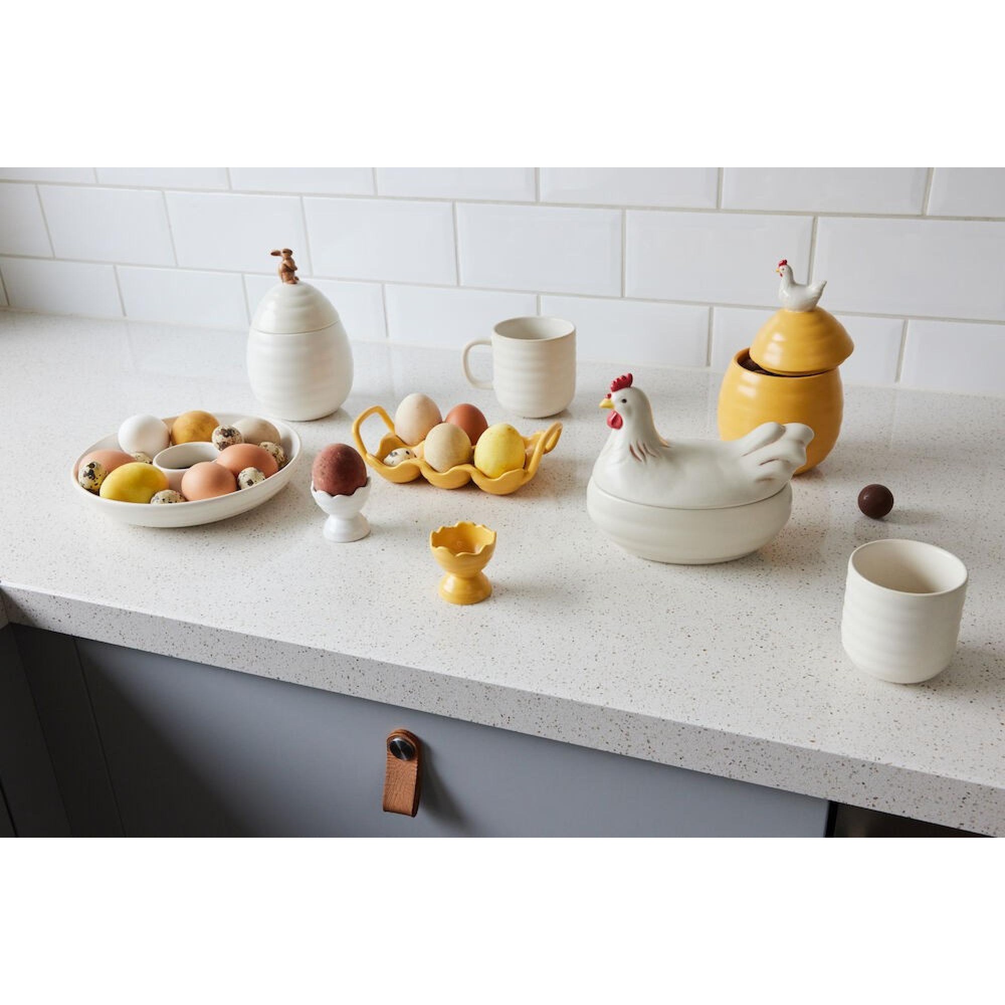 Der Eierbecher Ellen eignet sich perfekt zum Frühstück oder Osteressen und passt zu allen anderen Produkten der Ellen-Serie. Der Eierbecher hat eine tolle Größe und einen organisch aussehenden Rand, der an Eierschalen erinnert. Ellen ist aus Steingut gefertigt. Verkauft als Paar, verpackt in einer schönen Geschenkbox. Erhältlich in gebrochenem Weiß in einem warmen Gelbton. Spülmaschinenfest für einfache Reinigung. Der Eierbecher Ellen gehört zur Serie Ellen, einem Klassiker von Sagaform mit stilvollem Design. Die Serie kann das ganze Jahr über jeden Tag sowie bei Festen und unseren geliebten Traditionen verwendet werden.