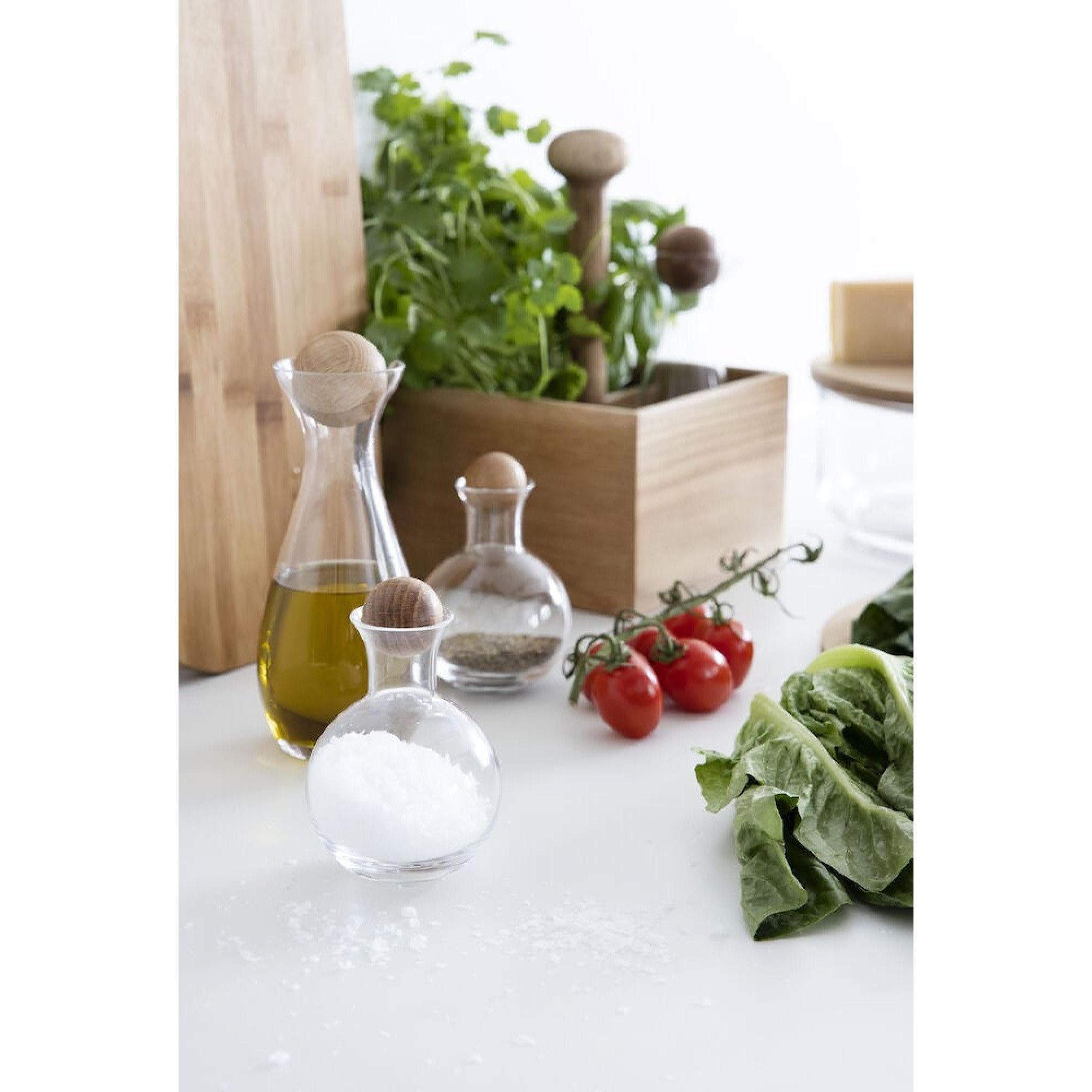 | Material | Mundgeblasenes Glas/Eiche |